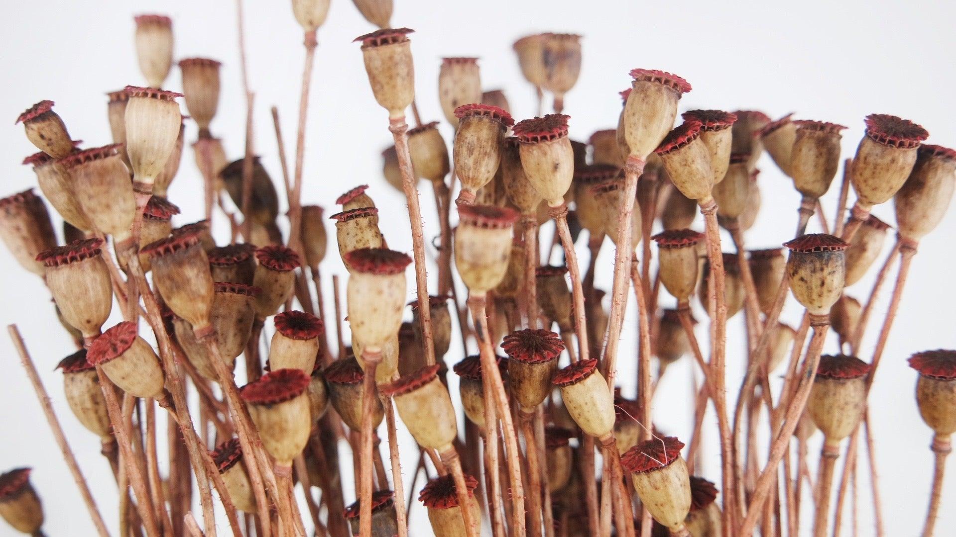 Mini capsule di semi di papavero essiccati - 1 bouquet - rosa vintage